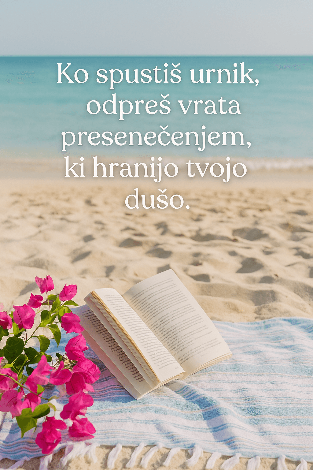 Na plažo sem prišla zgodaj zjutraj. Morje je bilo še mirno, sonce prijetno nežno in plaža skoraj prazna. V torbi sem imela vse, kar sem potrebovala za popoln dan: brisačo, kremo za sončenje, knjigo, vodo, sadje in prigrizke ter lahkotna oblačila za čez dan.
