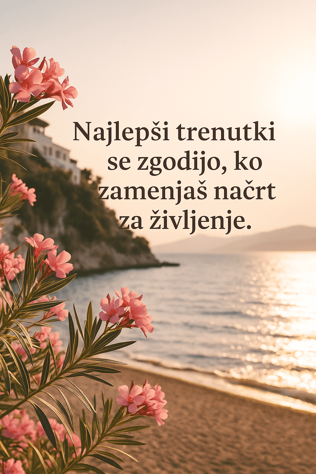 Načrt je bil jasen: dopoldansko plavanje, nato branje knjige, sprehod ob obali in iskanje posebnega kamenčka za spomin, osvežilni napitek v baru ob plaži, po kosilu še nekaj plavanja, zvečer pa raziskovanje nočnega življenja v bližnjih obmorskih mestih.