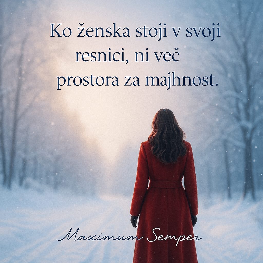 Ko se svet umiri, namreč odpadejo plasti, ki jih ženska nosi čez leto: obveznosti, vloge, pričakovanja, drobne izčrpanosti, ki jih je tako dolgo potiskala naprej, ker ni imela prostora, da bi jih pogledala. In v tej tišini, ki ni prazna - ampak polna - se začne pojavljati jasnost.