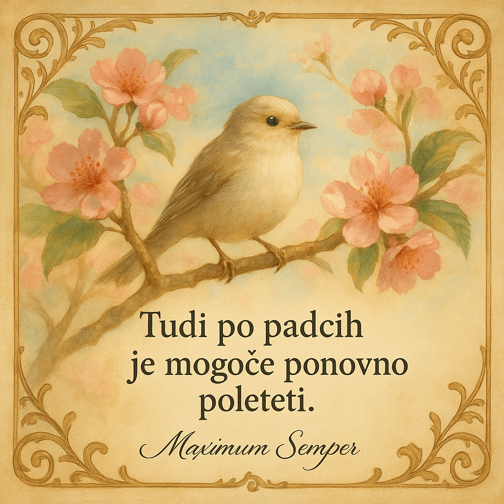 Na breskvah se je zadrževal majhen ptiček. Dan za dnem je posedal na vejah, kot bi si izbral moj vrt za svoj dom. Potem pa se je nekega dne zaletel v okno in obležal na tleh – ranjen, pretresen, razprtih kril. V njegovem nežnem dihanju sem začutila, kako krhka in hkrati trdoživa je življenjska sila. Ko je čez čas znova prišel k sebi, je dvignil krila in odletel v svobodo. Njegovo sporočilo je bilo jasno: “Tudi po padcih je mogoče ponovno poleteti.” Njegovo okrevanje me je spomnilo, da se moč pogosto rodi prav v trenutkih, ko se zdimo najbolj ranljivi.