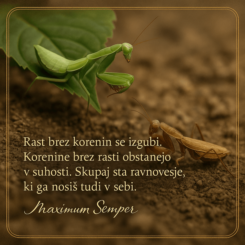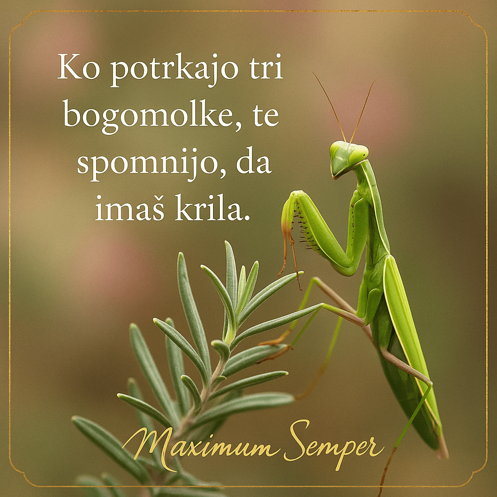 A bogomolka je tudi simbol ženske moči – tiste, ki ni glasna, ampak odločna. Tiste, ki ne razmetava energije, temveč jo usmeri, ko pride pravi trenutek.