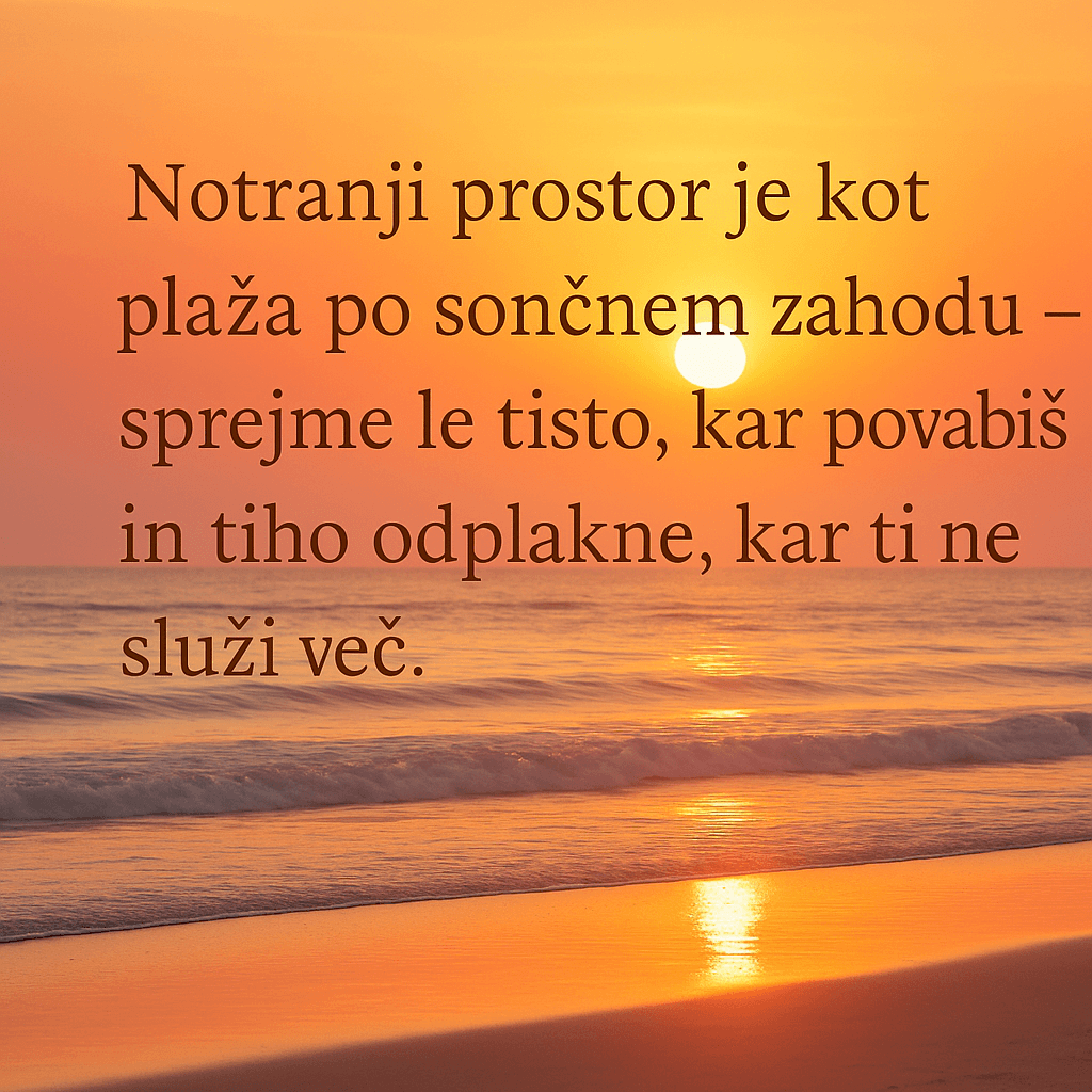 Naj bo tvoj notranji prostor kot plaža po sončnem zahodu – tih, miren in pripravljen, da sprejme le tisto, kar si zares želiš.